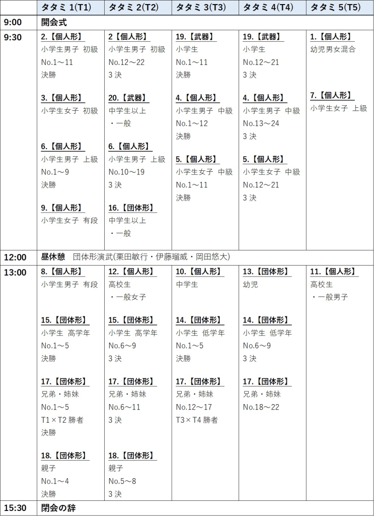 - 12:05 形分解演武(栗田敏行・伊藤瑠威・岡田悠大)